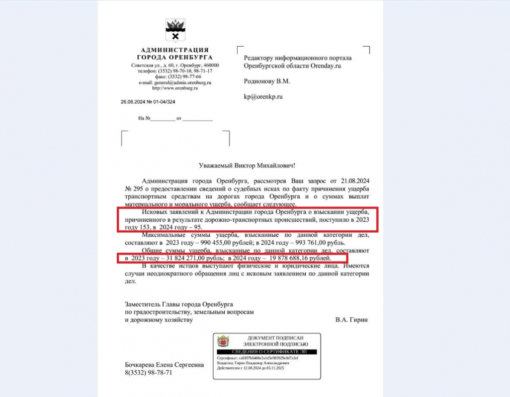 После такого, данные за неполный 2024 год о возмещении почти 20 миллионов рублей, что по сумме примерно сопоставимо с 2018 годом, при этом тогда и сейчас стоимость восстановительного ремонта значительно разнится в связи c повсеместным подорожанием товаров и услуг, подвергаются с нашей стороны большому сомнению. По данным мэрии, в 2023 году было подано 153 исковых заявления, в текущем году к этому моменту их подано порядка 95.