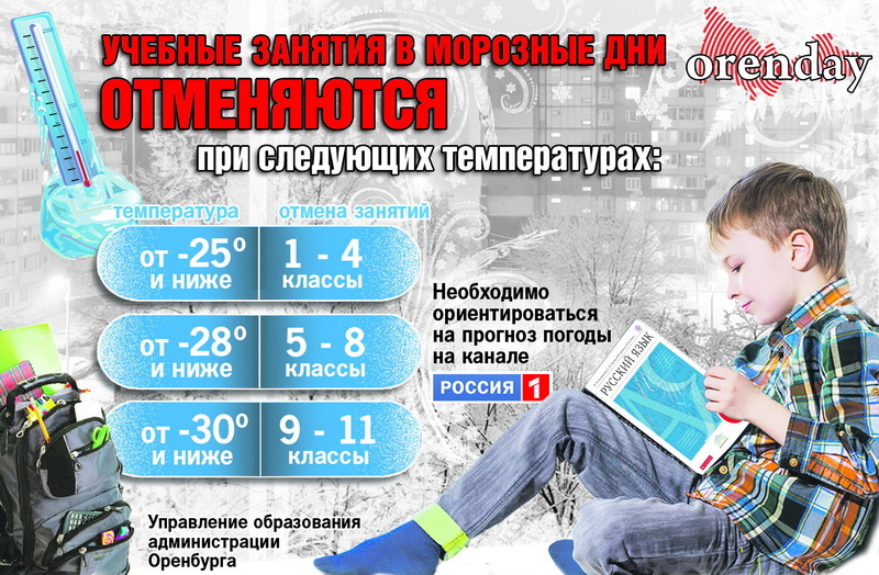 Учитывая, что во вторую смену учатся только школьники начального и среднего звена, в большинстве муниципалитетов Оренбуржья родители сегодня из-за мороза могут оставить детей дома. Напомним, что начальная школа не учится уже при морозе в -25 градусов, школьники 5-8 классов - при -28 градусах. Окончательное решение - отправлять или нет ребенка в школу - принимают родители сами.