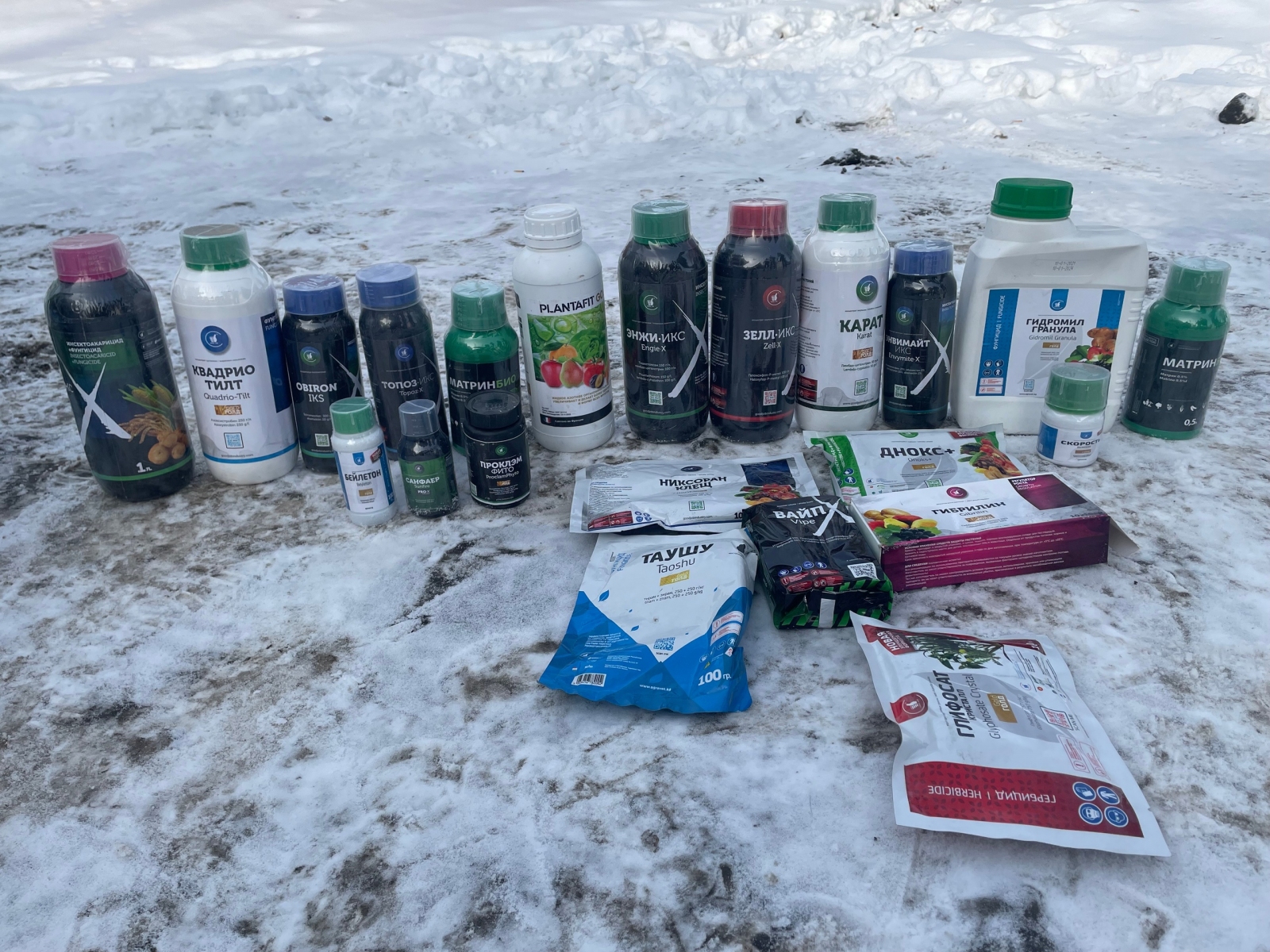 В ходе досмотра был установлен факт ввоза на территорию Российской Федерации пестицидов и агрохимикатов: Санфаер PRO X, Вайп икс (дымовые шашки), Бейлетон, Скорость, Гидромил гранула, Проклэм фито, Никсоран клещ, Глифосат кристалл, Таушу, Днокс+, Гибрилин-Голд - 65 коробок общим весом 465 килограммов, и Карат, Энвимайт икс, Квадрио Тилт, МатринБио, Энжи икс, Циперфос, Селлист икс, Обирон, Топоз, Зелл икс, удобрение Плантафит Голд - 841 бутылка общим объемом 825 литров.