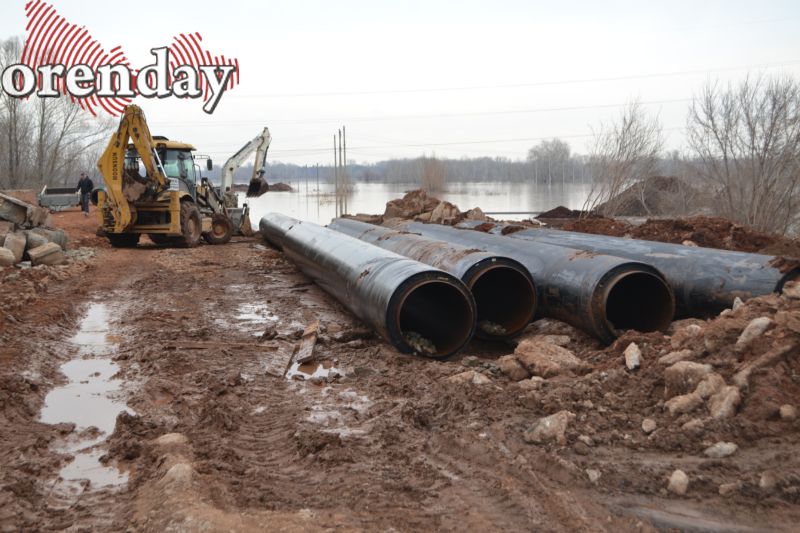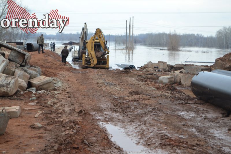 А сегодня здесь кипит работа, воду отсекают от домов глиняной насыпью, работают экскаватор, трактор, кладут и водопропускные трубы.