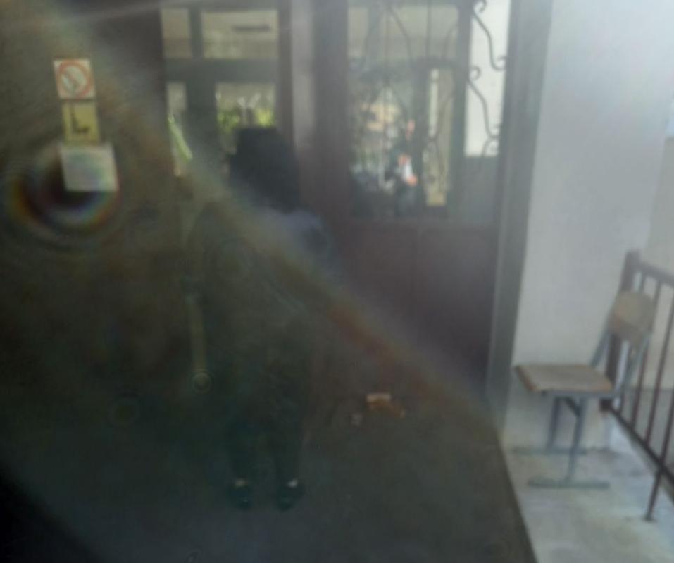 На крыльце образовательного учреждения за железной дверью было несколько взрослых – предположительно, родителей учащихся.