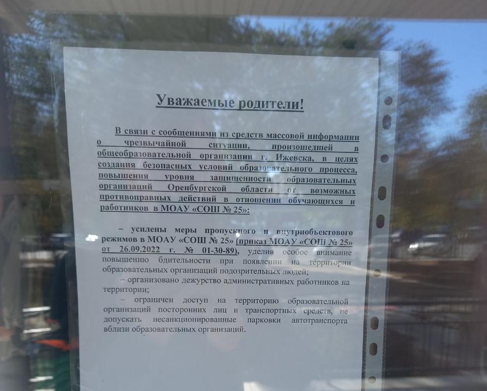 На выходе из здания, на одном из школьных окон, на листе формата А4 была вывешена информация для родителей об усилении мер пропускного режма. Говорилось о том, что уделено особое внимание на территории школы появлению подозрительных людей и несанкционированной парковке автомобилей. Сказано также об организации дежурства администратативных работников.