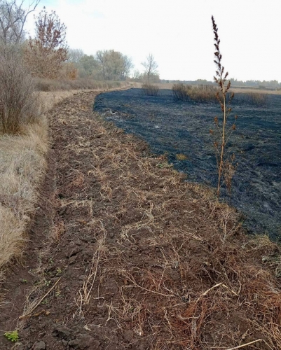 Сухая трава загорелась в районе села Съезжее Самарской области на границе Богатовского лесничества национального парка.