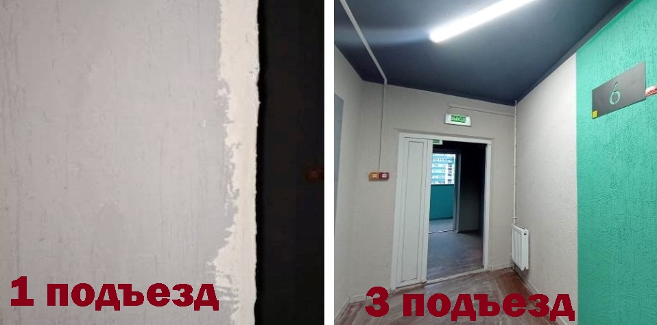 Вечером в замочную скважину ключом попасть невозможно! Пожарные шкафы без рукавов, двери замазаны краской. При этом состояние третьего и четвёртого подъездов в разы лучше! Там и освещение нормальное, и стены выкрашены добротно, трещин нет, имеется нормальное напольное покрытие. А у нас же одна лампочка на этаже, и та еле горит! Как так получилось, что два подъезда были приняты в эксплуатацию надзорными органами при наличии видимых проблем и там уже на протяжении года живут люди в таких условиях, а два других подъезда заселили меньше двух месяцев назад и там все в порядке?! Понимая, что теперь бесполезно требовать объяснений у застройщика и УК, мы за свои собственные средства провели строительную экспертизу, инициировали обращение в прокуратуру. Такое нарушение прав жителей допускать нельзя! - заявляют жители дома.