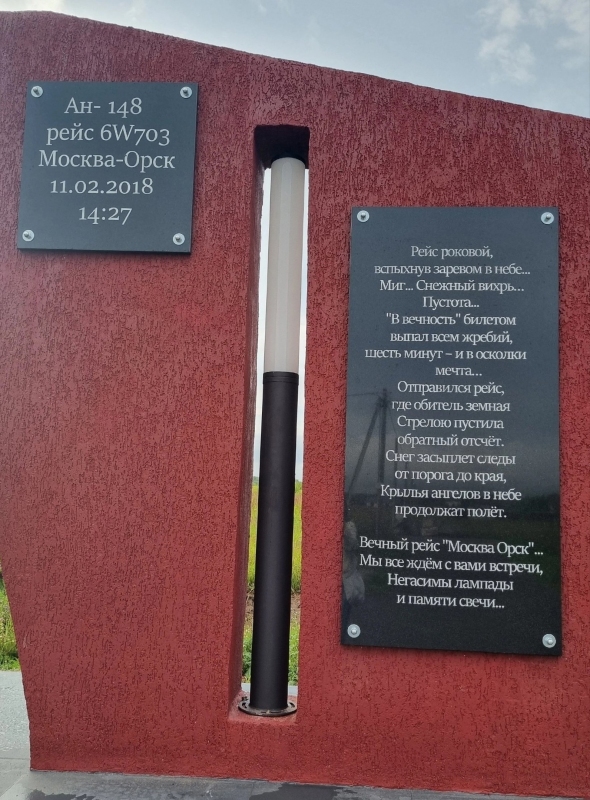 Оренбуржье со скорбью в душе и болью в сердце вспоминает погибших в авиакатастрофе людей. 11 февраля 2018 года 71 человек сели на борт рейса Москва-Орск, но к месту назначения так и не вернулись. Вылет состоялся в 14:21по московскому времени. Через несколько минут воздушное судно исчезло со всех радаров. Потом вся страна узнает, что самолет рухнул в Раменском районе Подмосковья. Самолет упал в поле между лесом и деревней Аргуново в нескольких сотнях метров от жилых домов. Самым страшным и долгим испытанием для родных погибших было опознание тел, фрагменты которых были разбросаны по всему полю. Процедура опознания длилась 9 месяцев.