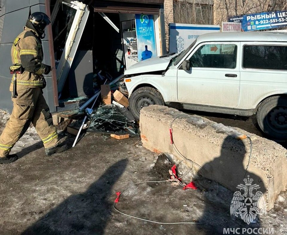В Оренбурге торговый киоск на Братьев Коростелевых не выдержал натиска легковой Нивы. Автомобиль врезался в небольшое помещение, выбив дверь и обнажив внутреннюю часть киоска. Водитель при этом получил травмы.