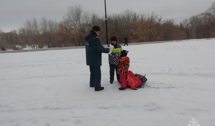 На льду Урала до сих пор, пренебрегая своей безопасностью, прогуливаются и катаются с горок также горожане с детьми.