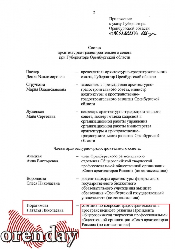 Предыдущие изменения вносились 27 июня прошлого года. Тогда Наталья Ибрагимова входила в состав архитектурно-градостроительного совета при губернаторе Оренбургской области, будучи заместителем председателя архитектурно-градостроительного совета, министром архитектуры и пространственно-градостроительного развития Оренбургской области.