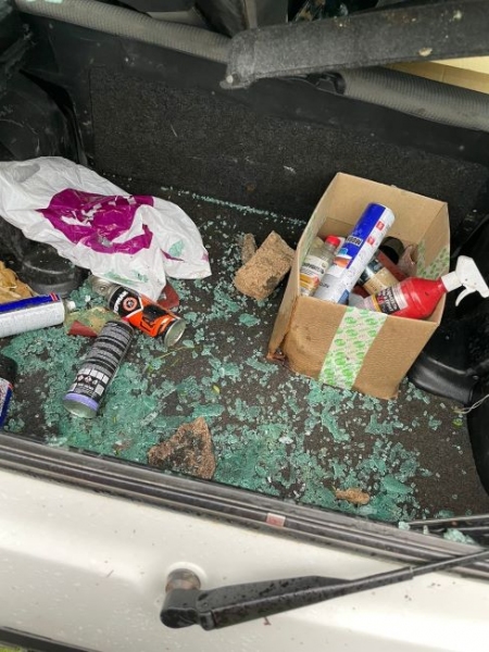 Хулиганы огромными булыжниками побили стекла в авто (три больших камня вместе с осколками валялись прямо в багажнике машины), а забравшись внутрь, изнутри еще, судя по следам, колотили ногами по лобовому стеклу, пытаясь выбить и его. Брать в автомобиле особо нечего было, кроме разве баллончиков с краской да газом, которые были в багажнике. Так что зачем это было делать - непонятно. Чья-то месть хозяевам - вряд ли, потому что у них есть другой автомобиль, которым они пользуются, а про эту машину особо никто и не знал.