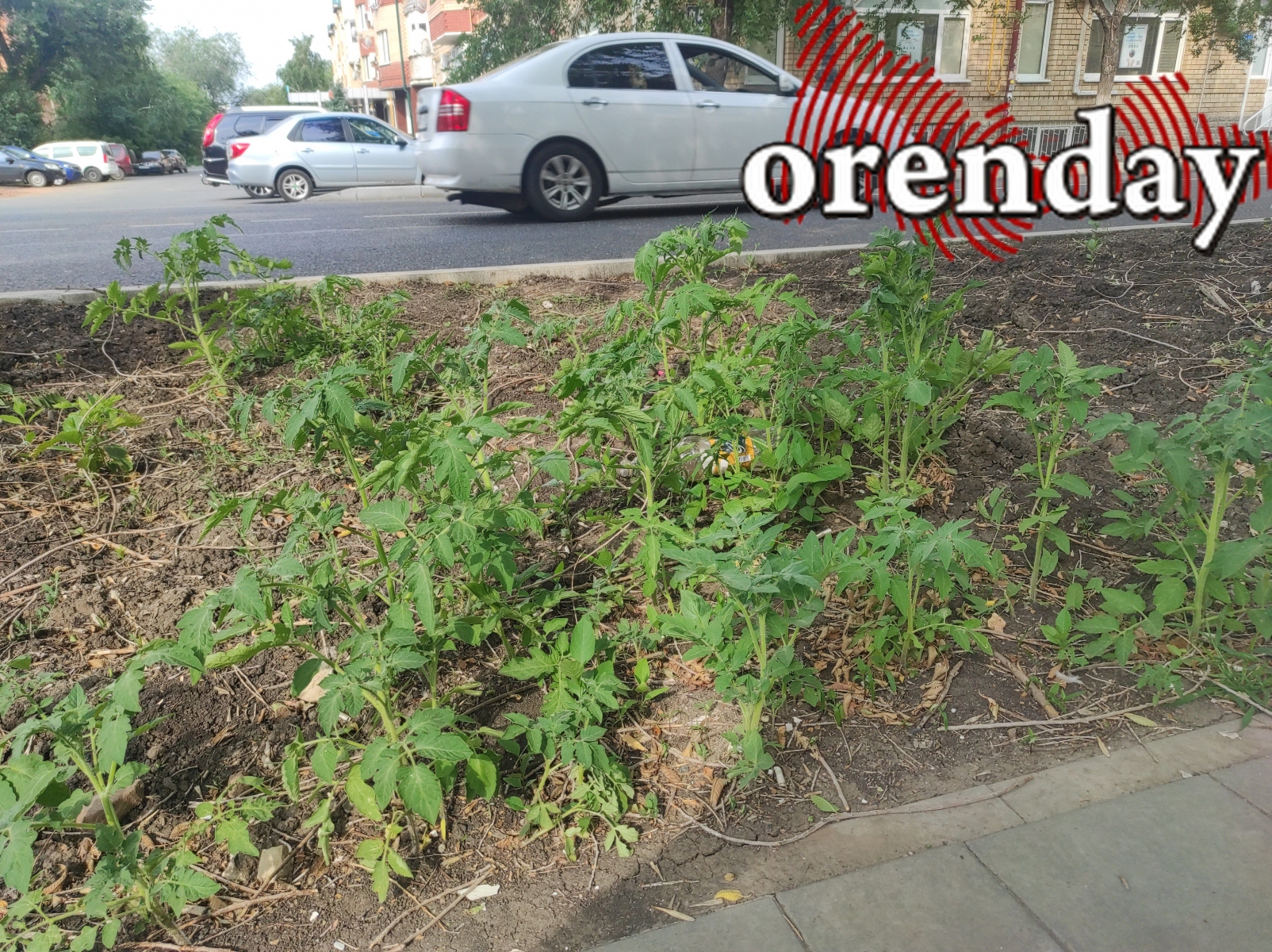 Как свидетельствуют первые цветы, стихийную грядку заселили помидоры. Знатоки, вполне возможно, уже сейчас смогут определить и сорт: если цвет их плодов окажется стандартным красным, то это будет очень кстати, поскольку руководство Оренбурга краснеть явно разучилось.