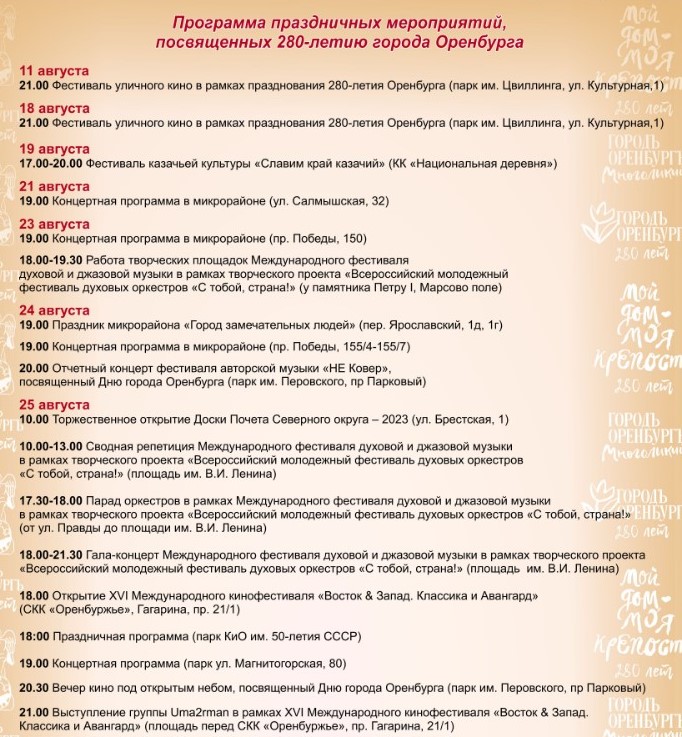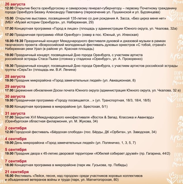 26 августа в 17.00 - праздничная программа "Мой Оренбург" (сквер в поселке Южный, ул Илекская).
