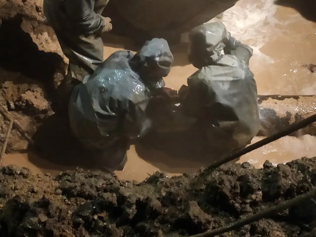 Добраться ночью до места повреждения коммунальщикам было не так-то просто – пришлось вырыть котлован в 2,5 метра и откачать воду.