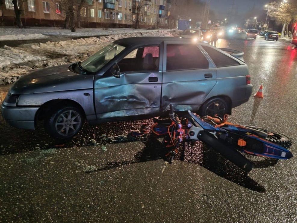 Около 19.40 часов 19-летний парень, находившийся за рулём автомобиля «ВАЗ-21124», при движении в районе дома №40 по ул. Котова, передвигаясь со стороны ул. Ткачёва в сторону ул. Бебеля, при развороте вне перекрёстка не уступил дорогу 23-летнему водителю питбайка «FX-MOTO». Тот двигался в попутном направлении прямо.
