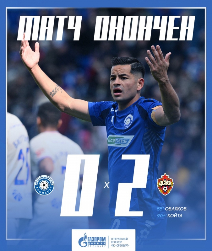 Счёт на 55-й минуте открыл полузащитник «ЦСКА» Иван Обляков. На 90+4-й минуте второй гол в ворота оренбуржцев забил нападающий Секу Койта.