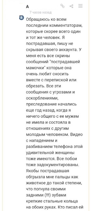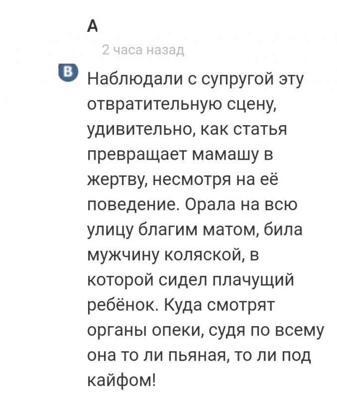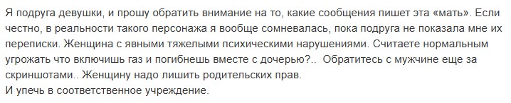 К слову, когда на сайте появилась эта история, среди комментаторов был замечен человек под ником бывшего супруга женщины. Сначала он рассказывал об инциденте как очевидец, заподозрив женщину в алкогольном либо наркотическом опьянении, после перевоплотился в пострадавшую девушку и даже ее подругу, изменив ник на "гость".