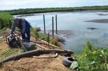 Вторую неделю интенсивно откачиваем воду с этой карты. Уровень её упал на 1 м. Оставшийся на поверхности слой не превышает 5 см. Слив осадка на иловые поля прекращен с начала апреля. Однако аномальный паводок и частые дожди отрицательно сказались на естественном процессе обезвоживания, - рассказывает начальник цеха очистных сооружений и канализационных сетей Сергей Курильченко.