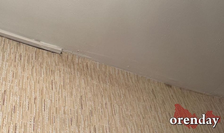 №16 - мокрые пятна над дверью, осыпается потолок, промок и изменил цвет линолеум, от наружной стены «отошёл» балкон;