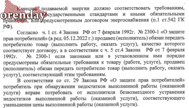 Мы неоднократно обращались в ООО «КЭС Оренбуржья» с требованием разрешить нашу проблему. Как исполнитель, предоставляющий коммунальные услуги, организация должна обеспечивать потребителей услугами качества, соответствующего всем обязательным стандартам, а также условиям договора. Мы исполняем свои обязательства и вовремя платим по индивидуальным лицевым счетам, но со стороны «КЭС Оренбуржья» надлежащего исполнения не наблюдаем, - говорят оренбуржцы.