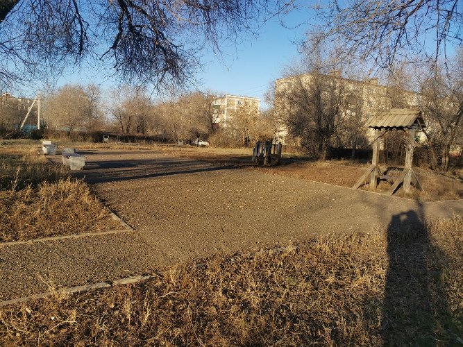 В Оренбурге на улице Народной 16/1 в сквере Хлебного городка местные жители просят заменить старое игровое оборудование. По мнению местных жителей, площадка выглядит не просто страшно, но и представляет угрозу безопасности детей. Сама территория сквера находится в неухоженном состоянии, все хаотично заросло травой.