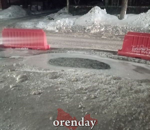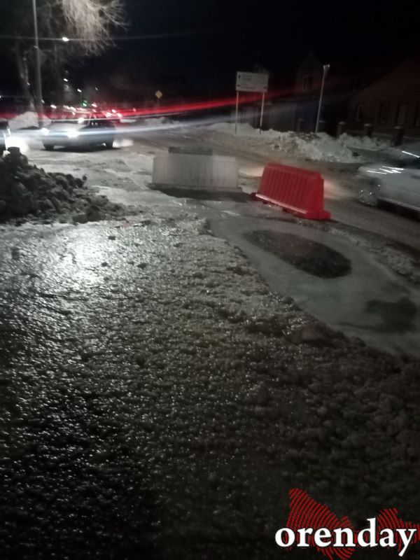 Сегодня на улице Степана Разина появились ограждения на проезжей части, предупреждающие автомобилистов об опасном участке дороги. Под уложенным не так давно асфальтом, видимо, произошла коммунальная авария, скорее всего, ночью здесь бил фонтан, а теперь трубу перекрыли, озерцо замерзло, но место чревато провалом, поэтому его пока и огородили до устранения возникшей проблемы. Сколько оно продлится - пока не известно, но по довольно оживленной улочке передвигаться теперь несколько проблемно, так как из-за закрытой полосы для движения автомобилисты вынуждены объезжать препятствие по тротуару, что мешает пешеходам.