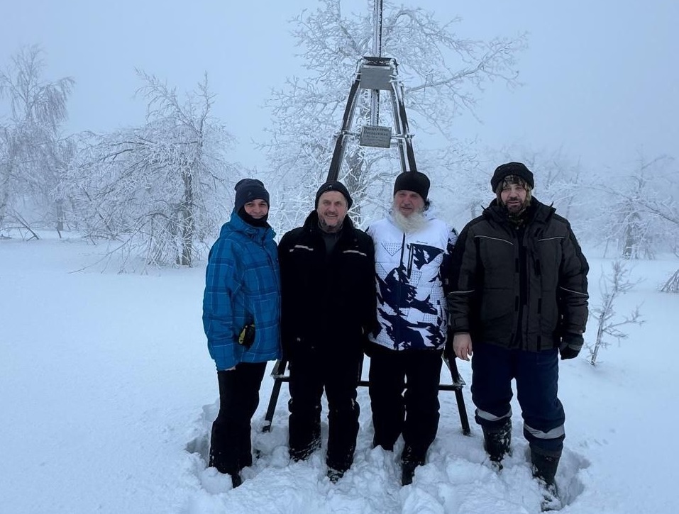Сложный подъем епархиальная экспедиция преодолевала на снегоходах. Отметим, в то время, когда города в области утопают в лужах и остатках черного снега, гора в Тюльганском районе словно не подвластна смене сезона. Здесь все еще царит зимняя сказка с глубокими сугробами и инеем на деревьях, а кругом тишина и спокойствие.
