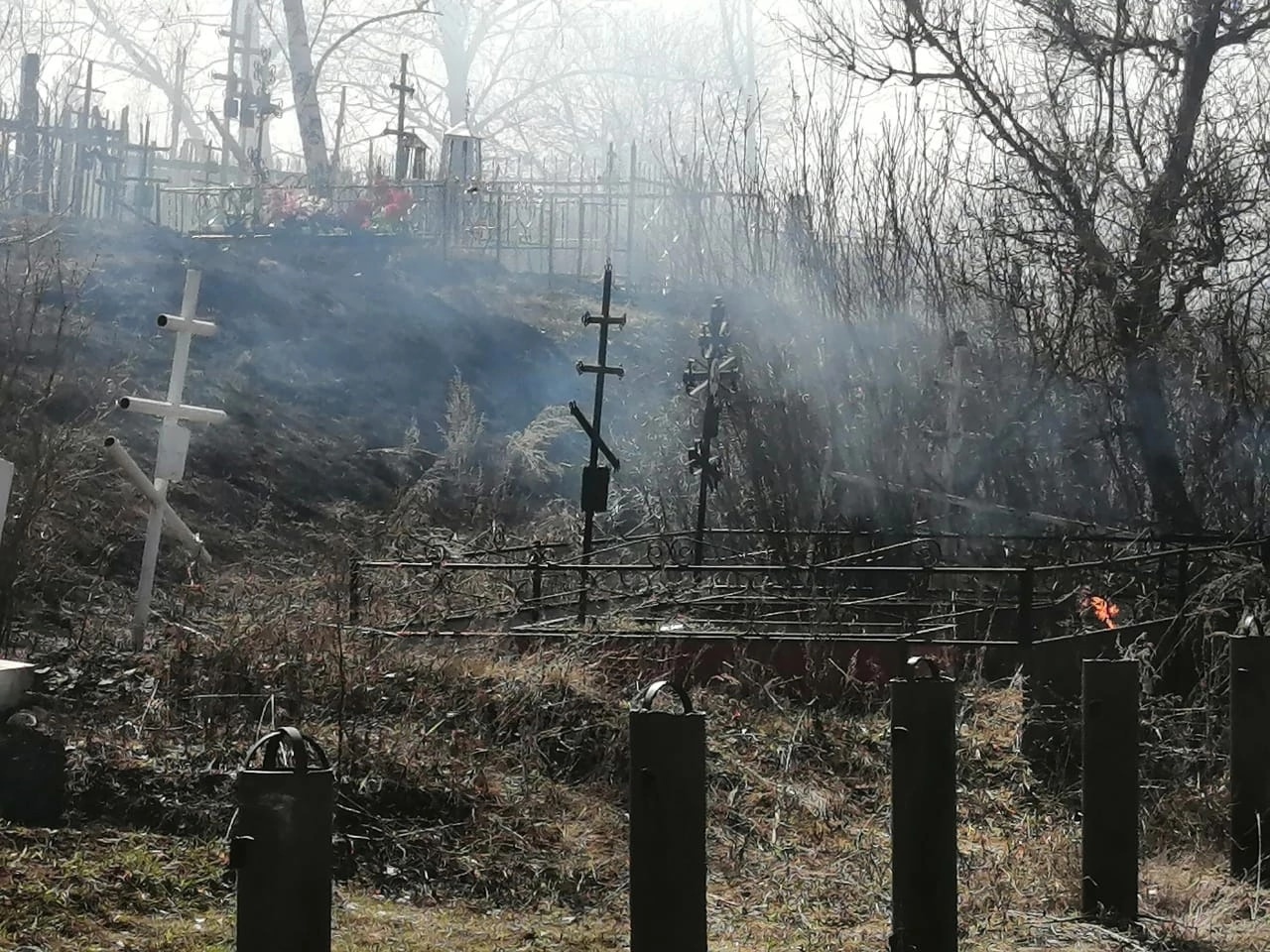В Абдулино ежегодно накануне Пасхи кто-то поджигает траву на центральном городском кладбище.