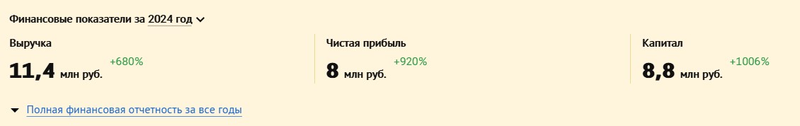 Согласно открытым данным, за 2024 год выручка фирмы из Республики Башкортостан составила 11,4 млн. рублей.