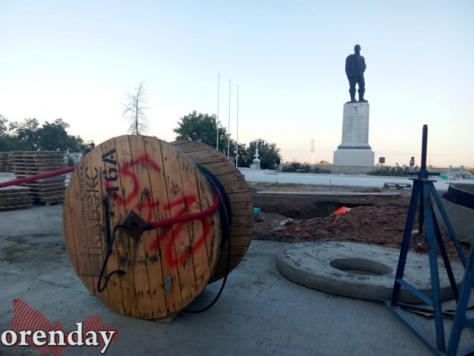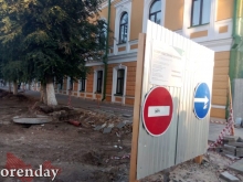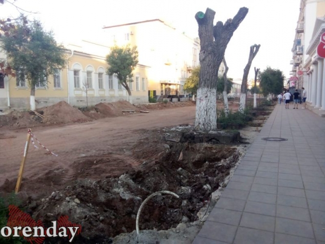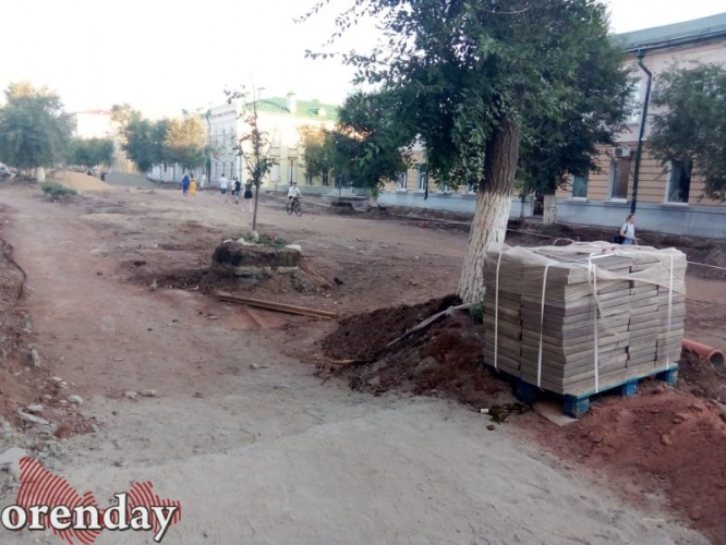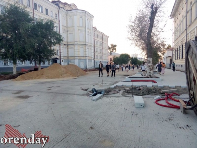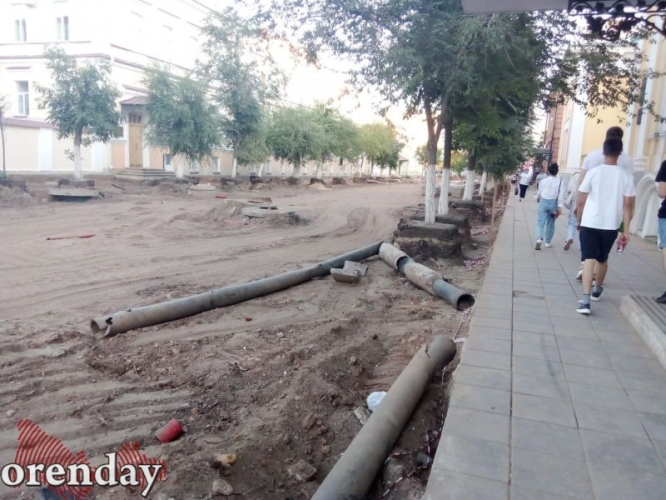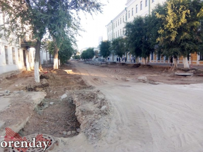 Часть улицы Советской в Оренбурге, как и верхняя набережная Урала - от музея истории города до памятника Чкалову - ныне перерыты по причине их благоустройства. На площади перед музеем истории у трудяг, которые ведут ремонт, целый мини-лагерь: вагончики, из которых тянуло готовящимся ужином, кабинки биотуалетов, мыться, правда, приходится, наверное, бегать в Урал.