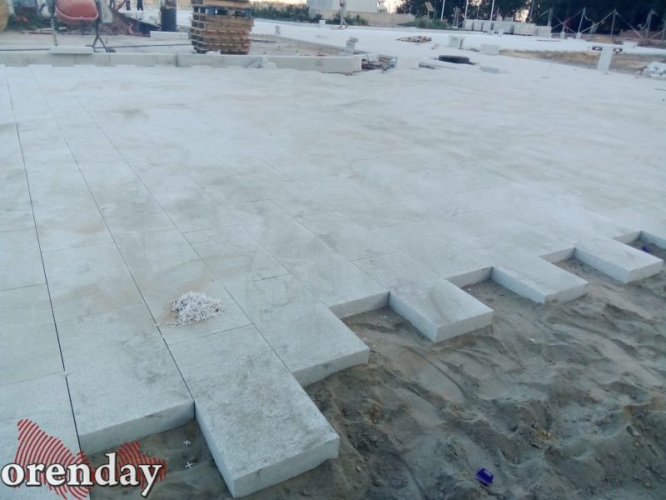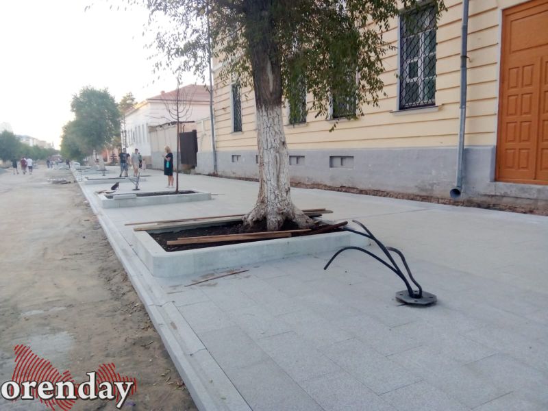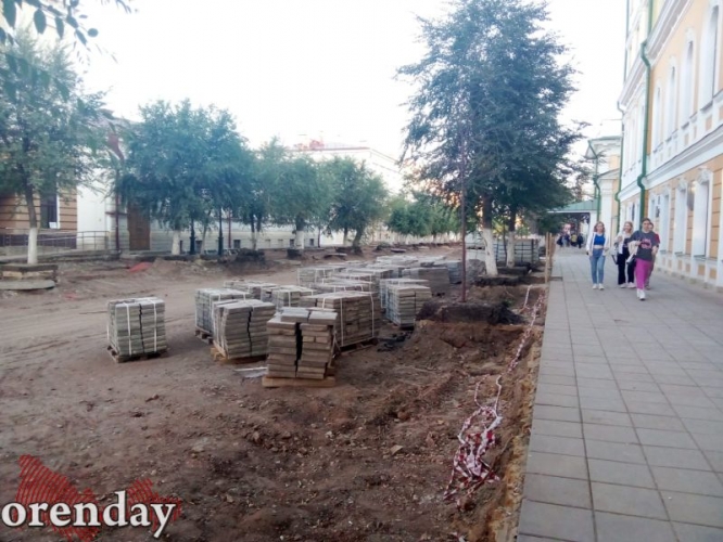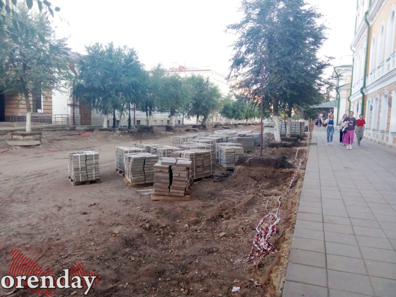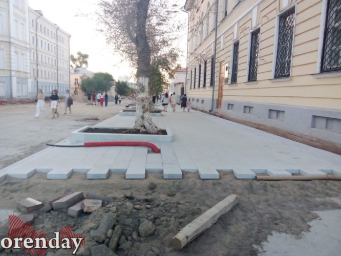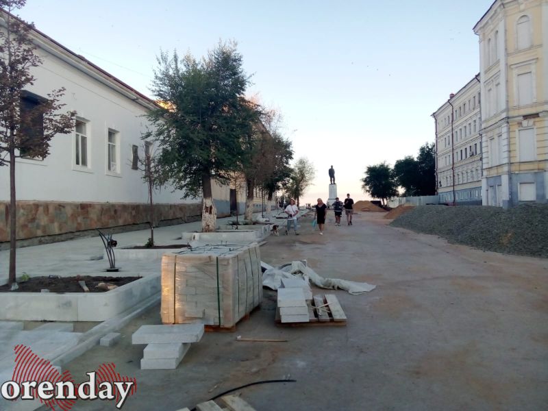 На промежутке у памятника Чкалову и в самом начале Советской уже начали выкладывать гранитную плитку - она будет под цвет спуска к Уралу, правда, учитывая, какой замызганной была темная плитка, с ужасом представляется, что же будет спустя несколько месяцев со светлой. Местами еще не вывезенная лежит ровными стопками сложенная снятая старая плитка. Окончание благоустройства значится - 1 ноября 2024 года.