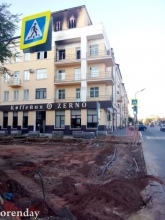Для прохожих оставили узкий проход на одной стороне улицы, а также идти можно прямо по раскопанной траншее. Главным образом работы сейчас ведутся на участке Советской от улицы Набережной до Максима Горького. Под деревьями оставили только небольшие кубы с землей, правда, из них по бокам торчат обрубленные корни. Не помешает ли только это их дальнейшему росту и развитию?