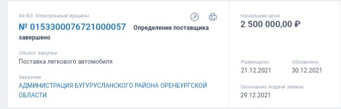 В Бугурусланском районе чиновники разместили закупку на 2,5 млн. рублей.