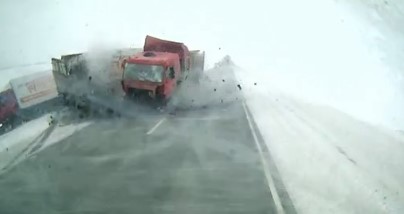 Водитель автомобиля "МАН" в составе с прицепом не справился с управлением и выехал на полосу встречного движения. Там он столкнулся с большегрузом "МАЗ", который отбросило на еще одну фуру - "ДАФ". Момент столкновения попал на видеорегистратор "ДАФа". После столкновения "МАН" съехал в левый по ходу движения кювет.