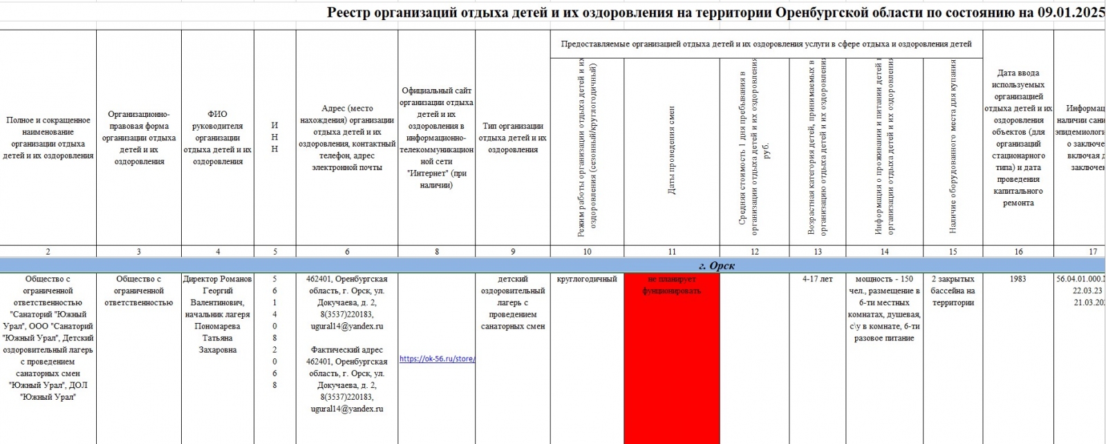 Вот только про круглогодичный былой лагерь ни слова не сказано. Кроме того, в опубликованном региональным министерством соцразвития реестре организаций отдыха детей и их оздоровления по состоянию на 9 января 2025 года красным по белому сказано, что «детский оздоровительный лагерь с проведением санаторных смен «Южный Урал» не планирует функционировать».