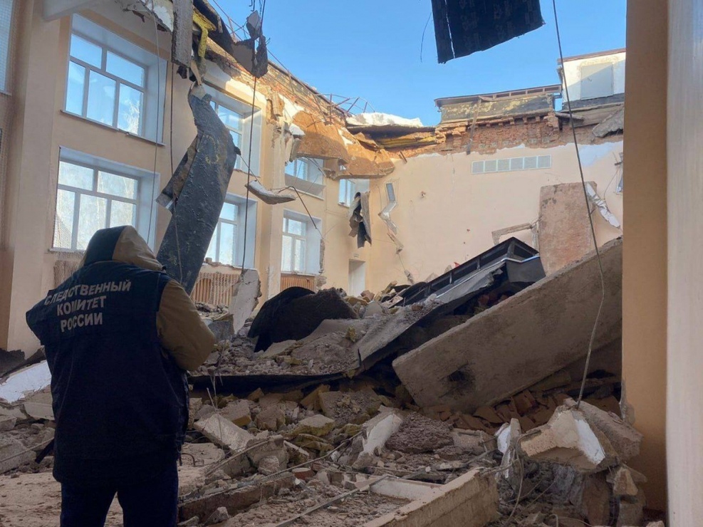 Хотя незадолго до этого там было множество взрослых и детей, проводились общешкольные мероприятия... Площадь обрушения составила около 108 м². СУ СК РФ возбудило уголовное дело по признакам преступления, предусмотренного ч. 1 ст. 293 УК РФ (халатность), а буквально на следующий день специалисты-эксперты начали проводить инструментальное обследование на предмет определения причины обрушения.