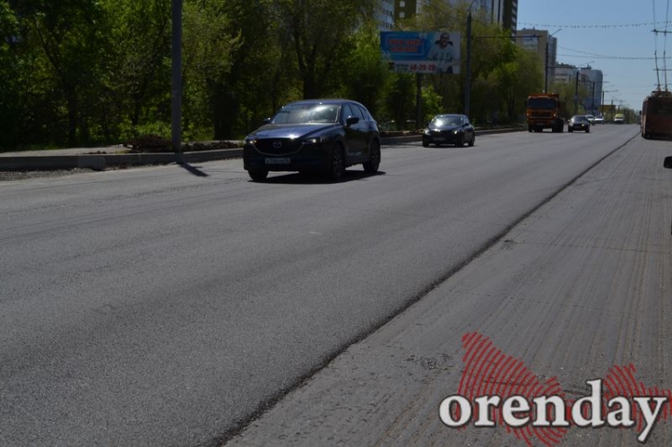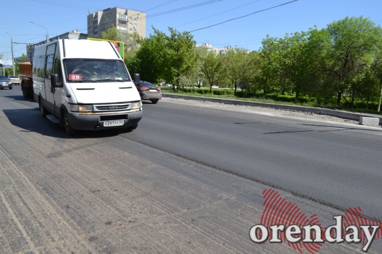 На участке от остановки «Ликос» в сторону центра Оренбурга на нескольких полосах уже уложен новый асфальт. Однако не на всех полосах. Крайняя правая всё еще остается без верхнего слоя. Самое интересное, что в одном из мест новый асфальт прерывается на 20 метров, а потом вновь продолжается. Бордюрных камней, естественно, пока нет. Зато то тут, то там разбросаны инструменты дорожников, остатки от их «деятельности» да разбитые плиты с кусками асфальта и гравием, кучи песка. Неизвестно, для кого ограничено сигнальной лентой место около пешеходного перехода. Разве что собака не перешагнет через неё. Да и та перепрыгнет…