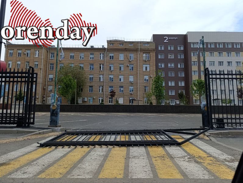 Не выдержали порывов и новенькие металлические ворота в Оренбургской областной клинической больнице им. В.И. Войнова.