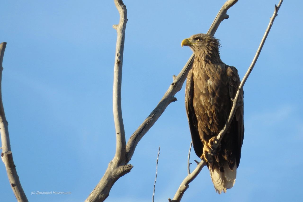 Старший госинспектор Дмитрий Немальцев рассказал, что огромные белохвостые орланы в теплое время года обитают в речных поймах, где ловят рыбу, теперь же настало время, когда они начали патрулировать степь, выискивая себе пропитание в виде мелких животных и грызунов.