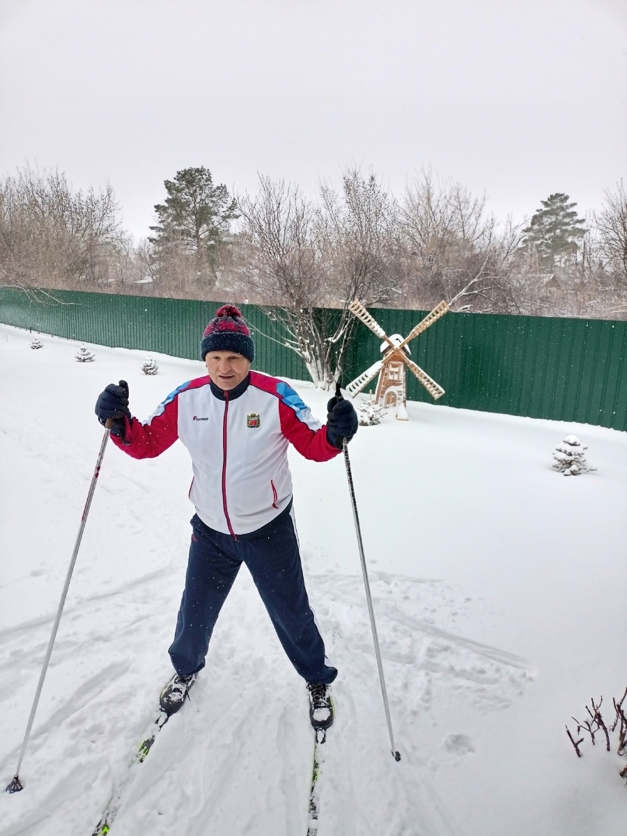Вячесав Сулаев, увидев снег у себя во дворе снег, надел лыжи.