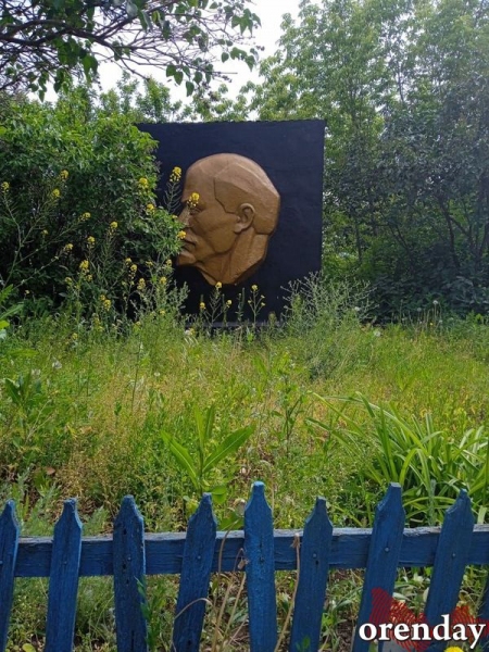 Догоняют сорняки по росту мемориальную стелу в честь Владимира Ленина.