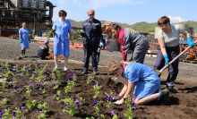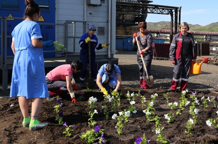 Цветники можно увидеть на входной группе управления комбината, рядом с кислородной станцией, ЧОП «Сплав» и на посту № 7. В основном высаживанием занимались сотрудники ООО «Хозбытсервис», которым помогали сотрудники подразделений комбината. На клумбах появились целые рисунки с замысловатыми узорами. Например, на них можно увидеть российский триколор и другие элементы.