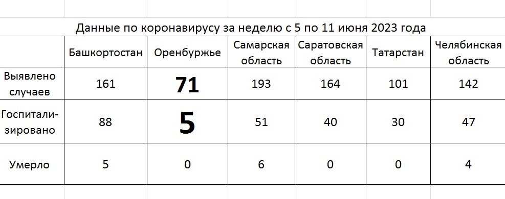 В то время как в Башкортостане и Татарстане, а также в Самарской, Саратовской и Челябинской областях усредненное число госпитализированных составило 51, в нашем регионе на больничные койки попали всего пять человек, то есть, в десять раз меньше! А в сравнении с Башкортостаном, где слегли 88 пациентов, это меньше сразу в 17 раз!