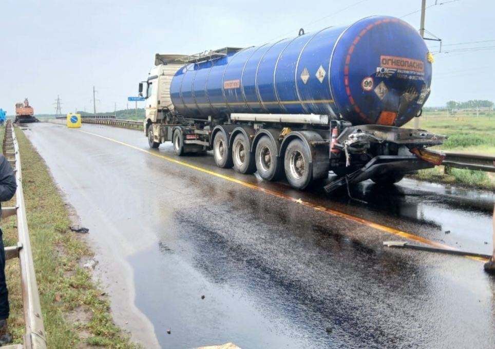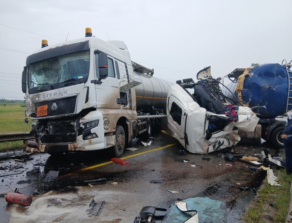 Водитель автомобиля Scania с полуприцепом-цистерной не выдержал безопасную дистанцию и допустил столкновение с автомобилем Sitrak в сцепке с полуприцепом-цистерной, который ранее двигался в попутном направлении и остановился на запрещающий сигнал светофора. После чего автомобиль Sitrak отбросило на впереди стоящий автомобиль КАМАЗ в сцепке с полуприцепом-цистерной. В результате столкновения на проезжую часть разлилась сырая нефть. 60-летний водитель Scania из Оренбурга с различными травмами был госпитализирован в больницу.