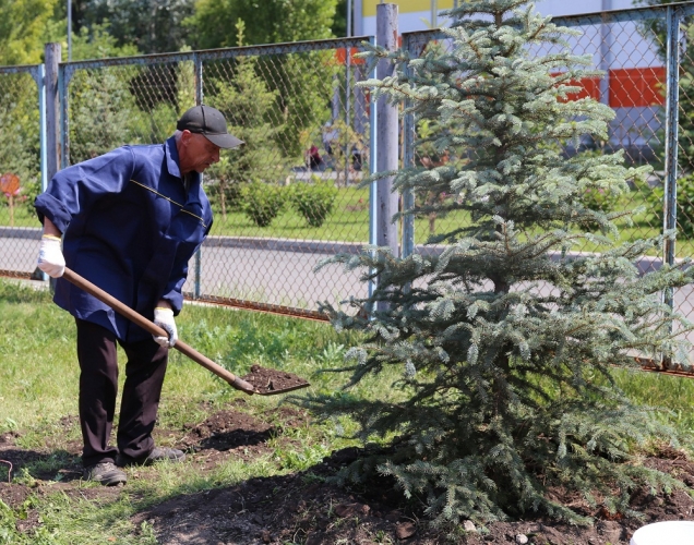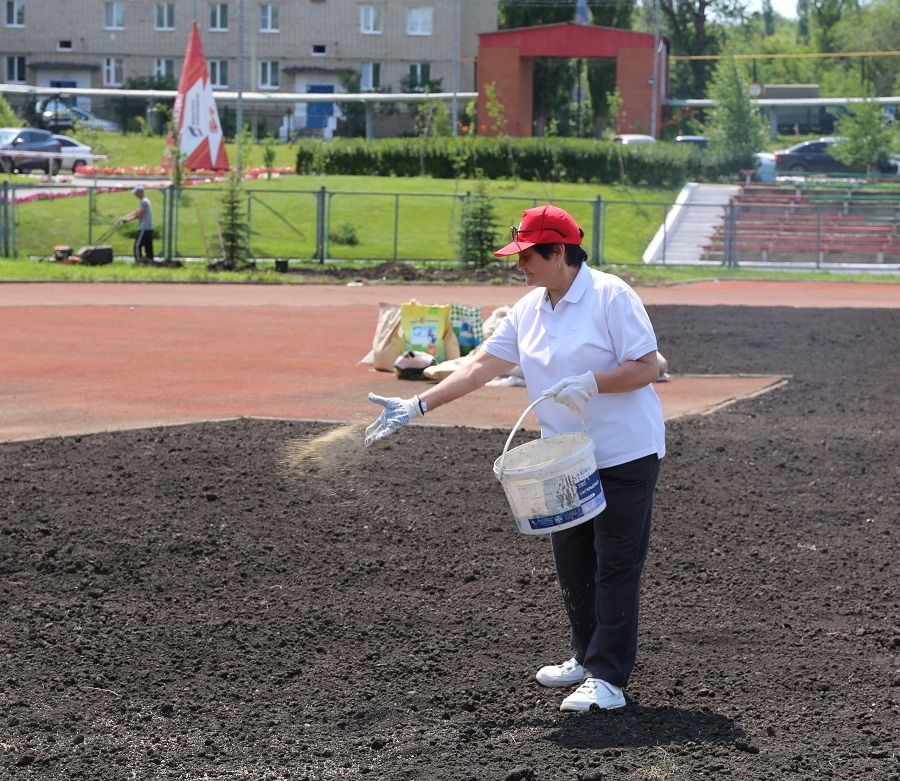 Трудовой десант из работников и ветеранов градообразующего предприятия на протяжении двух дней наводил чистоту на спортивном объекте, завозил и культивировал землю под посадку зеленых насаждений. Как итог, на стадионе высажены пушистые ели и посеяна газонная трава.