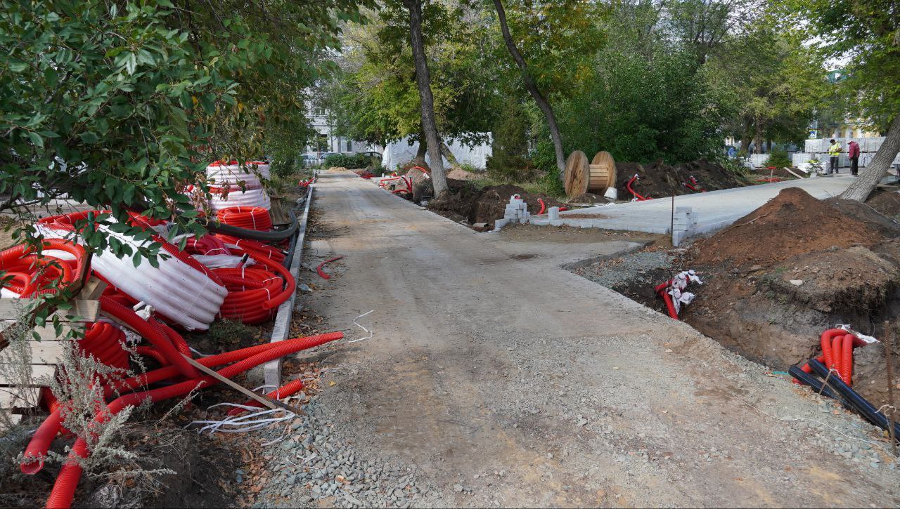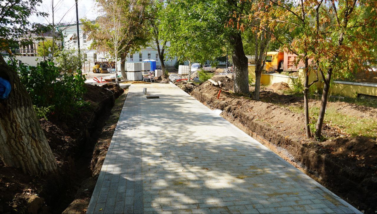 Впереди – установка освещения, высадка деревьев и засеян газон. Несмотря на капризы погоды, работы пока укладываются в график.