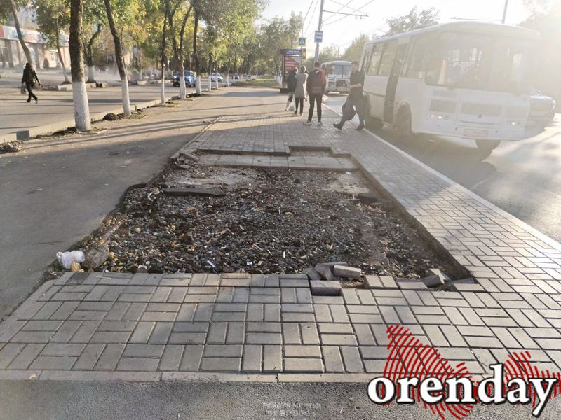 На остановке "Парк им. Гуськова" когда-то росли цветы, а сейчас битая плитка, мусор и засохшая трава - красота по оренбургски.