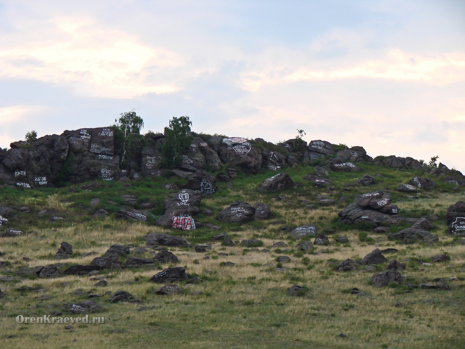 Но, чиновникам до него абсолютно нет никакого дела. Они не обеспечили режим особой охраны памятника. Его естественный рельеф расписан надписями разного содержания, предположительно аэрозольной краской. Это фото проекта "Краевед Оренбуржья" датировано еще 2012 годом...