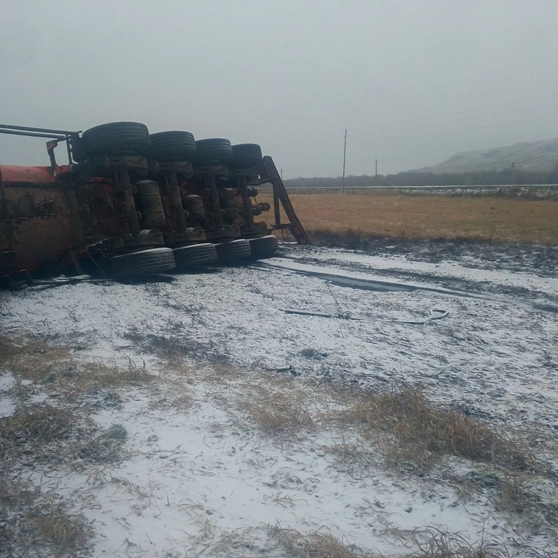 ДТП обошлось без человеческих жертв, но из автоцистерны в границах МО Полибинский сельсовет произошел разлив нефтесодержащей жидкости на участок сельскохозяйственного назначения.