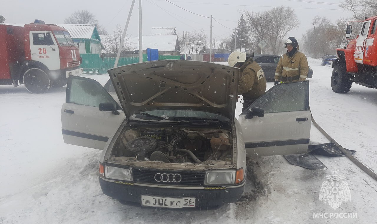 Один из автомобилей загорелся. Огнеборцы ликвидировали возгорание, обесточили автомобиль и убедились в отсутствии угрозы повторного возникновения огня.