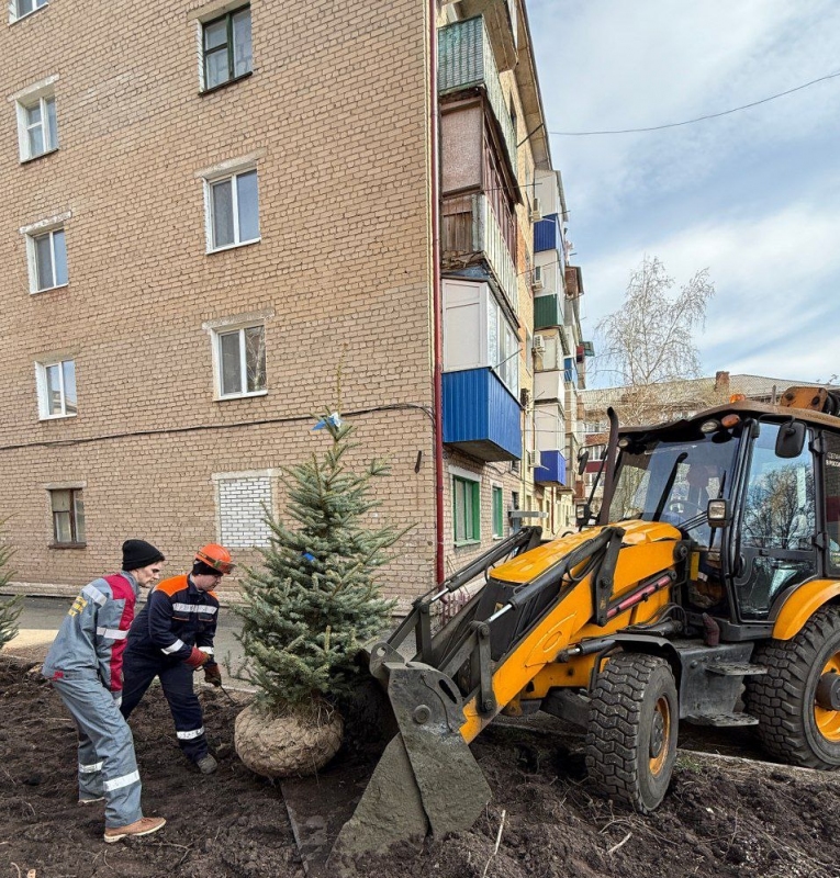 Работы по озеленению Медногорска будут продолжены. Вслед за пушистыми елями работники комбината планируют высадить на улицах города яблони и сакуру.