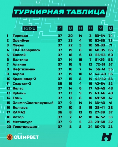 Первая строчка ФНЛ – в руках «Торпедо». А помочь «Оренбургу» её вернуть может его бывший тренер – Роберт Евдокимов. Ныне он тренирует «Кубань», и именно с нею 21 мая дома встретится «Торпедо». Если краснодарцы смогут отобрать очки у москвичей, то «Оренбург», в случае своей победы, выиграет первенство ФНЛ. Для выхода в РПЛ «Торпедо» необходима хотя бы ничья с «Кубанью», потеря очков «Факелом», либо результат, при котором «Оренбург» не сыграет вничью с «Волгарем».